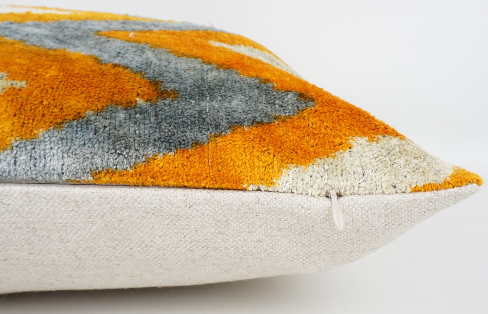Seidenkissen 40x60 cm mit Chevron-Muster in Safran-Grau-Offwhite